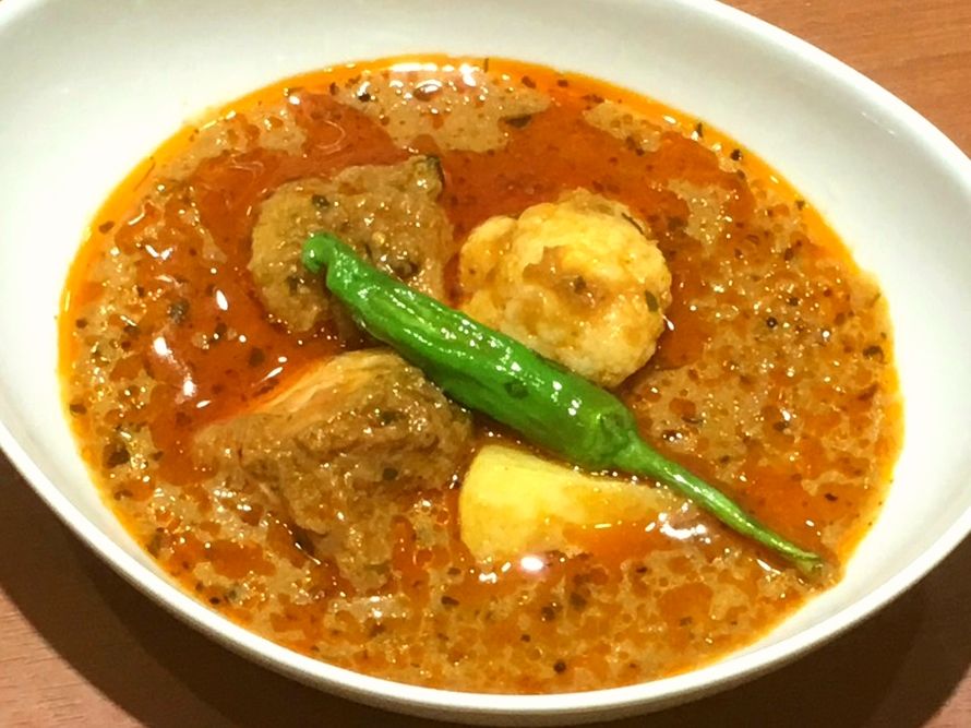 デリー東京ミッドタウン店 2017.09.18 ミッドタウン店、今週のカレー デリーミッドタウン店、今週のカレーは「ホームメイドチキンカレー」です。 お客様からのリクエストで、一般家庭のカレーが食べたいというということで、作ったそうです。 これといった特徴というより、ノンベジの食卓の一品カレーでしょう。 ミッドタウン店は、ワーカーの方のランチ利用が多いですから、社員食堂の普通のカレーと考えられるかも。 そこでチキン以外に、ポテト、カリフラワー、しし唐を加えて、栄養バランス?を考えたかな。 でも、こういったものが食べやすく、美味しかったりしますね。 ぜひ、お試しを!