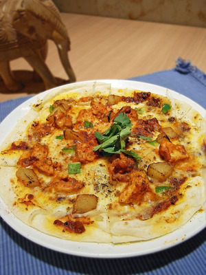 スパイスを工夫したトマトソースを作り、トッピングにも、スパイシーなチキンを乗せ、デリーなりに、インド感を漂わせています。