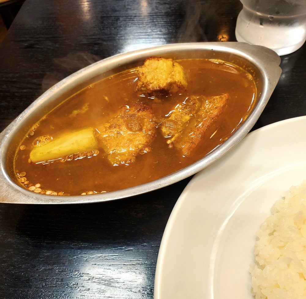 両店とも、柔らかく煮込まれたポークが浮かんだインドカレー(カシミールカレー)が召し上がれます。