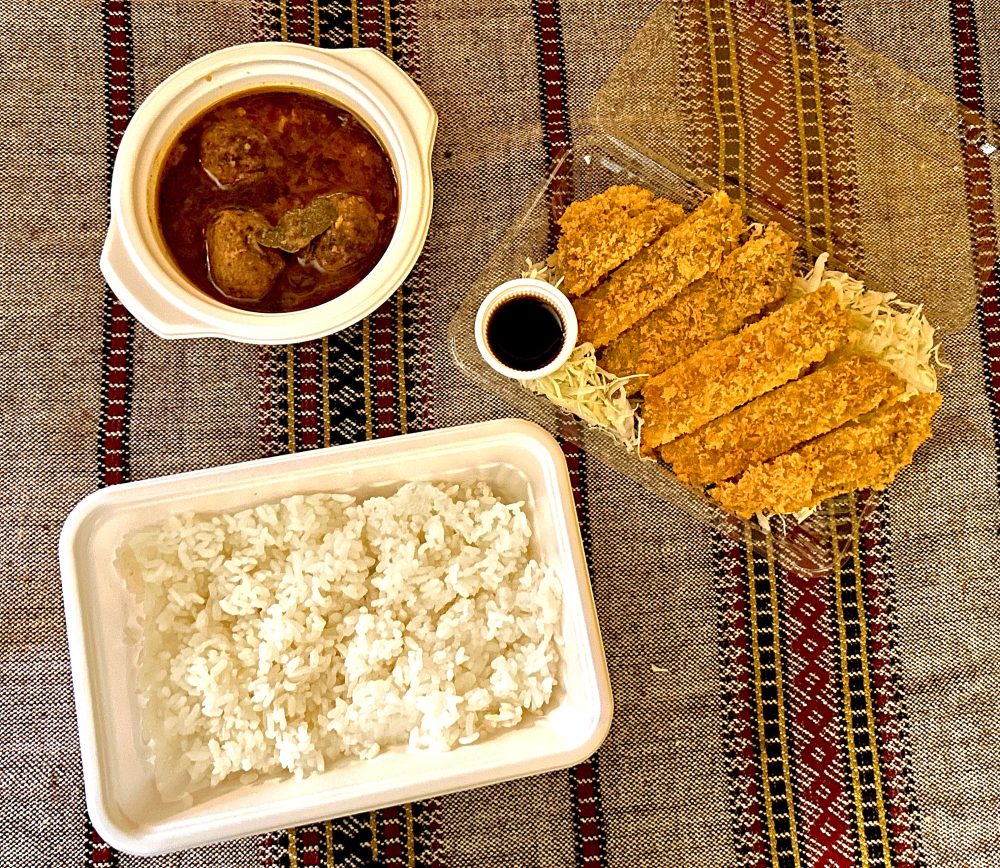アトリエデリー 2025.10.06 コフタカレーとロースカツ 明日から金曜日までのアトリエデリー・カレーのお弁当は「コフタカレーとロースカツ」のお弁当です。 コフタはお団子、今回は肉団子のサラッとしたタイプのカレーです。 そしてお馴染みの副菜は「豚カツ・ロース」です。 トンカツ、カレー、ライス、キャベツで¥1300です。 カシミールとんかつソースも付きます、 相変わらず、ボリューム満点で、2食分としてお召し上がりになる方もいらっしゃいます。