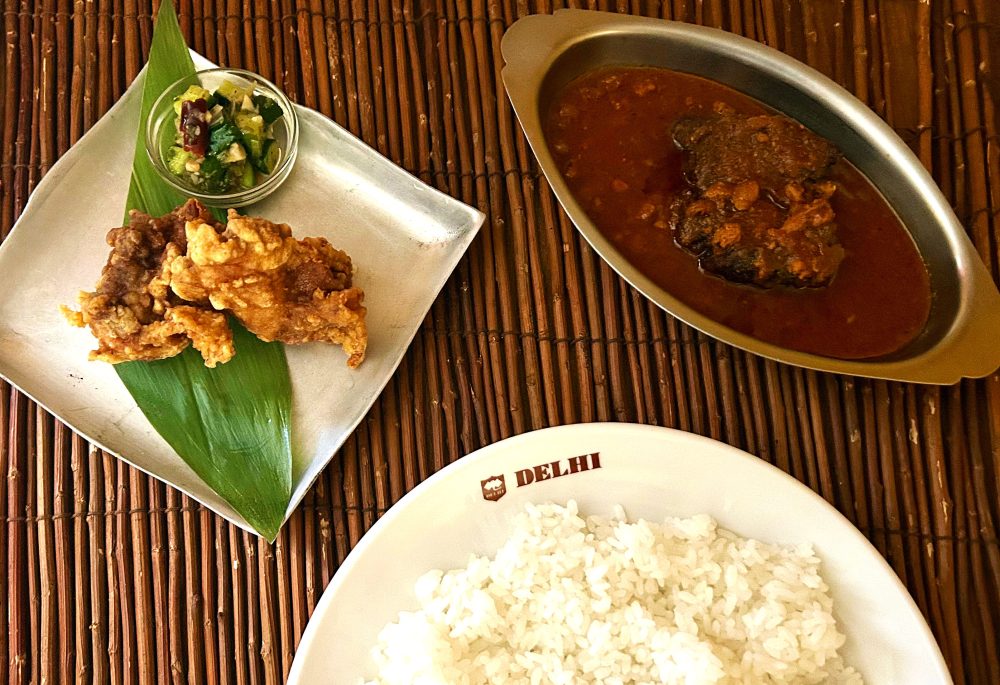 カレーは、トロトロ大ぶりの豚角煮入りカレーに花椒の香りをプラスした、やや辛口。