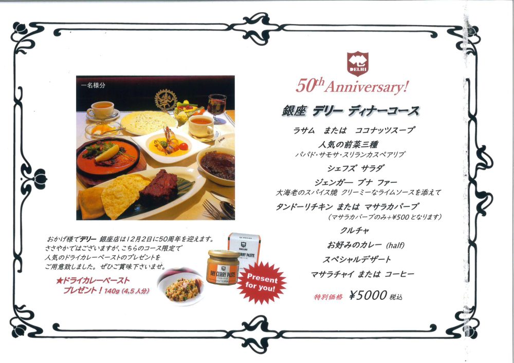 明日12月2日、デリー銀座店は開店50周年を迎えます。