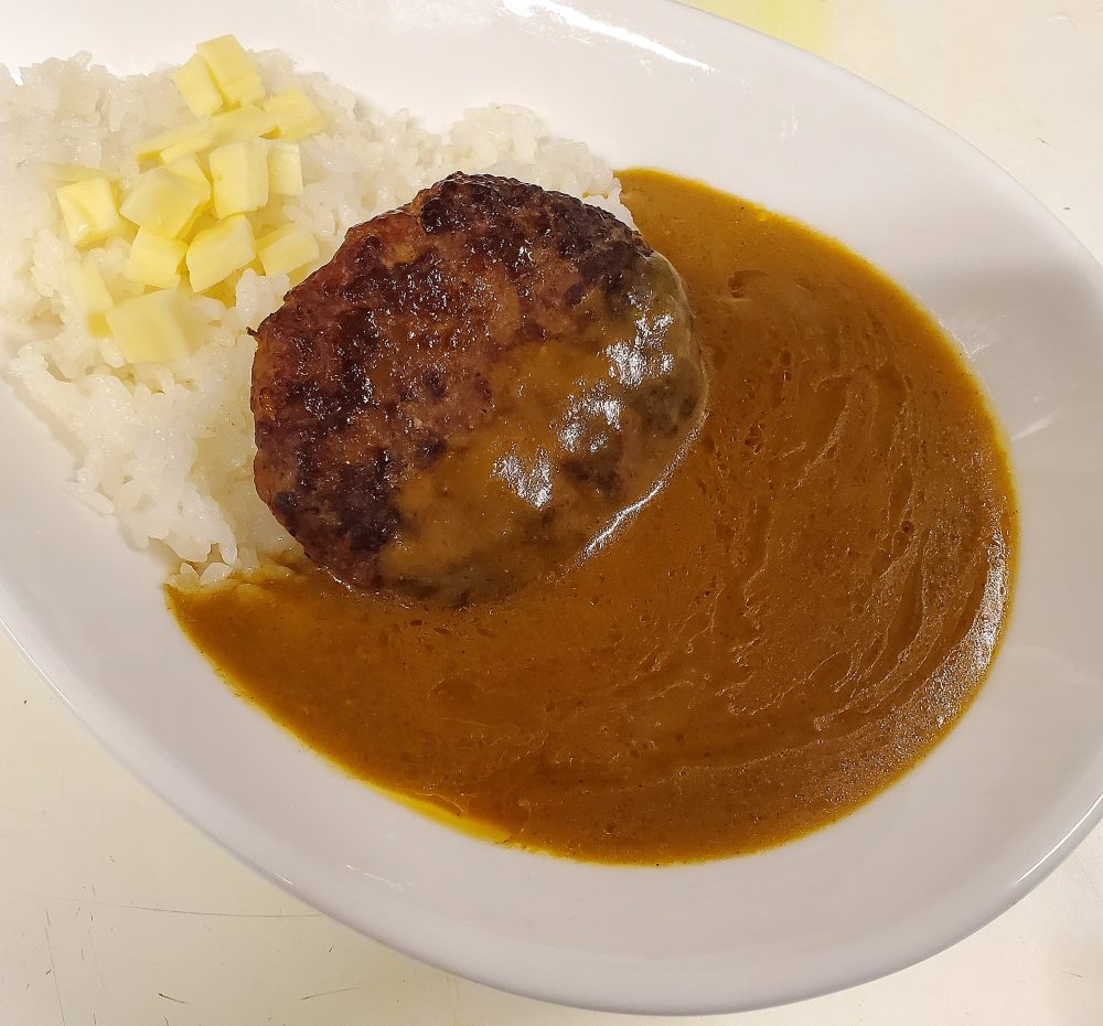 ハンバーグはその料理自体の個性が強く、カレーと出会っても、主張は曲げない。ここに好き嫌いはあるかも。