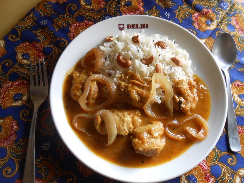 起源は諸説ありますが、ムガール帝国の調理場でコックたちが作っていて、たぶん、王様用ですから複数のカレーや料理があったのでしょう、鍋に炒めあがったタマネギがあり、それをカレー用の鍋に入れようと思ったところ、別にタマネギを炒めていた鍋に間違って入れてしまった。