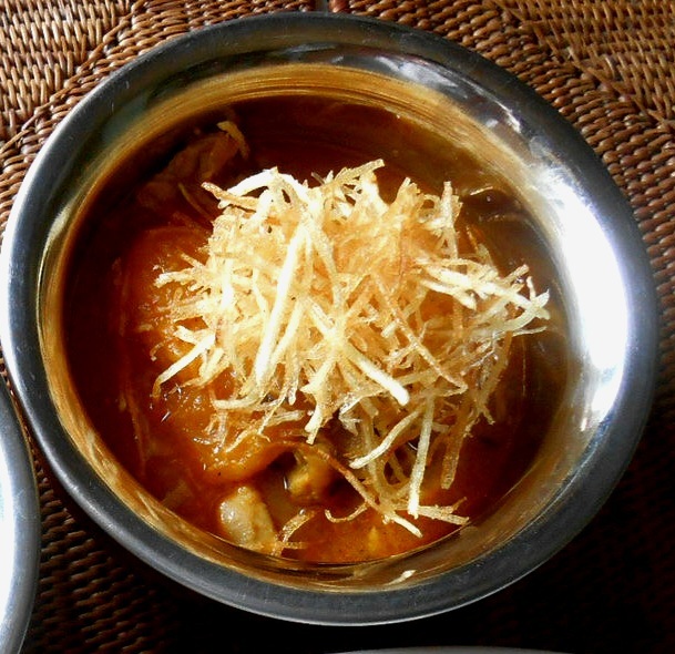 カレーのベースは、インドのオーソドックススタイルですが、ポイントはご覧のポテトフライ。