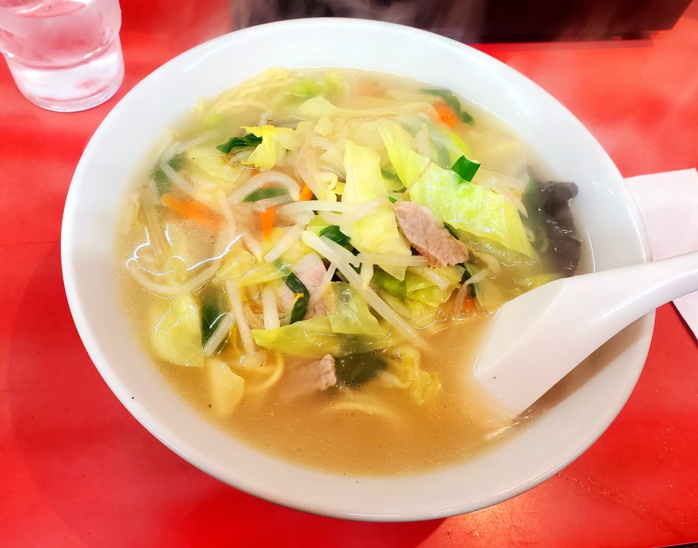 タンメンとは漢字では「湯麺」で、汁そばの総称だと思いますが、今では、野菜炒めたっぷりの塩味がほとんどです。