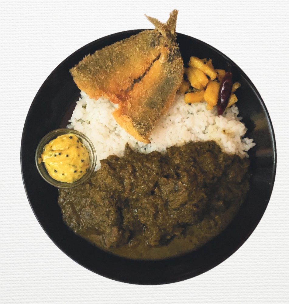 来週のアトリエデリーのテイクアウトカレーお弁当は、マトンサグワラ(マトンとからし菜のカレー、マトンサルソンカサグ)、スパイシーアジフライ、ガーリックムラコアチャールです。