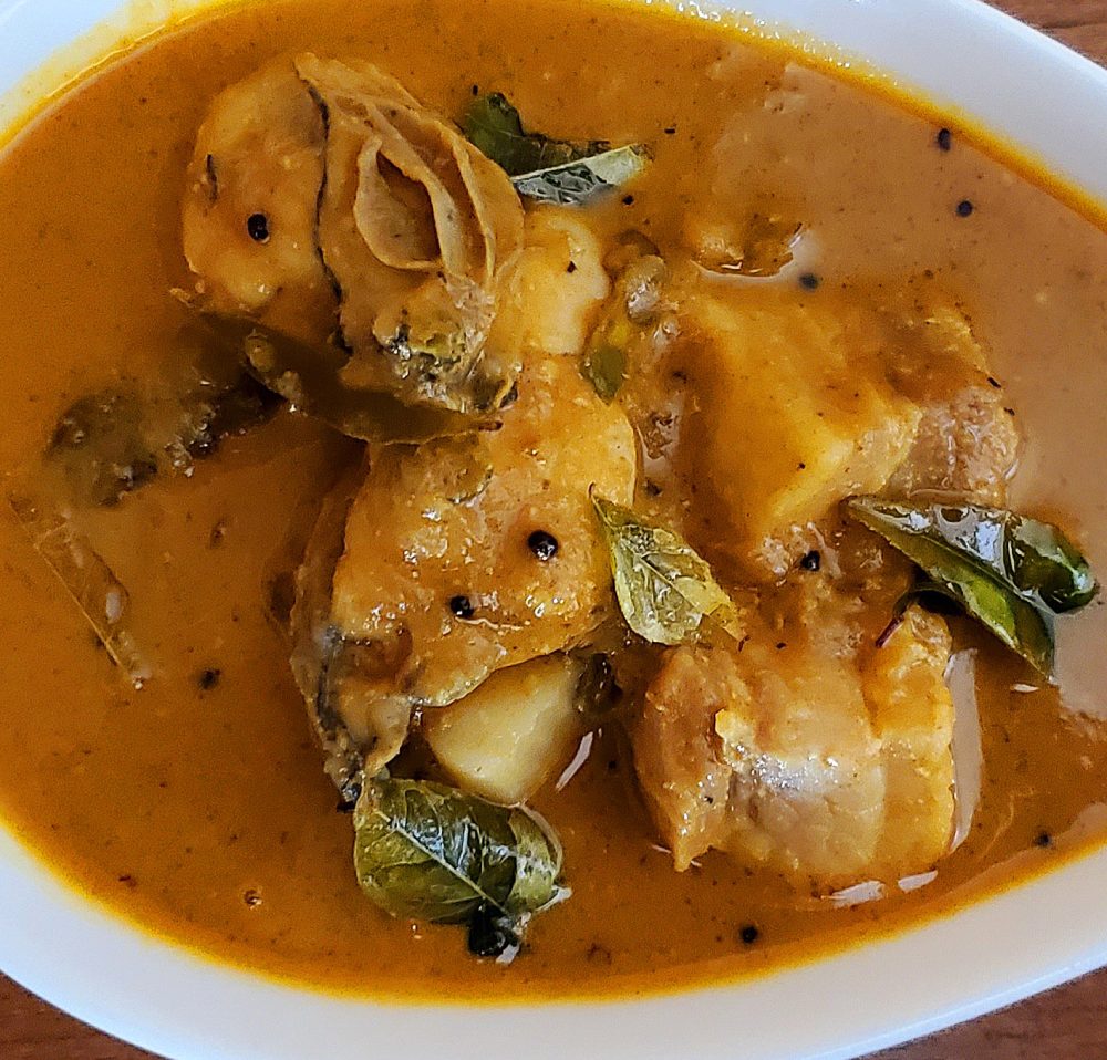 マサラはマスタードシード、カレーリーフを使った南インド風で、辛口です。