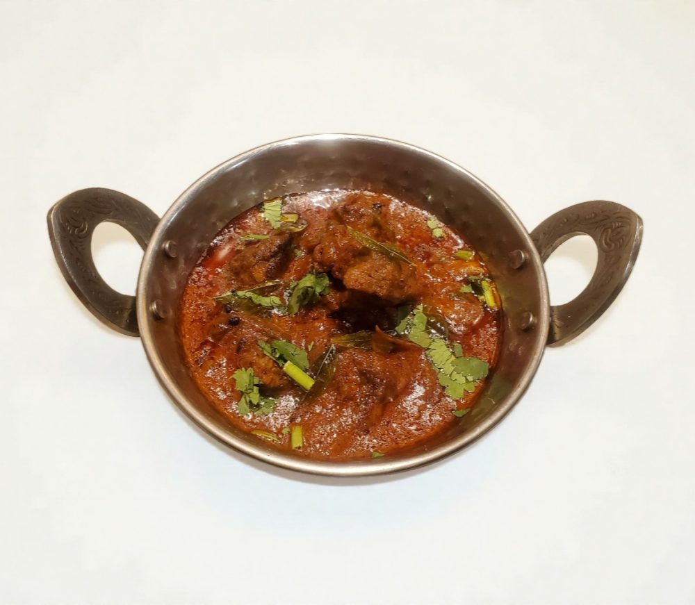 柔らかくとろとろに煮込まれたマトンカレーで、今回は少なめのココナッツミルクと乳製品、カレーリーフで香りを出しました。