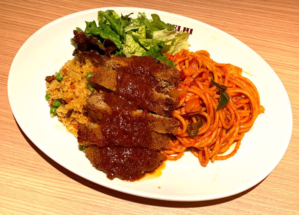 トンカツ、ナポリタン、ドライカレーまたはピラフのワンプレート料理に「トルコライス」があります。