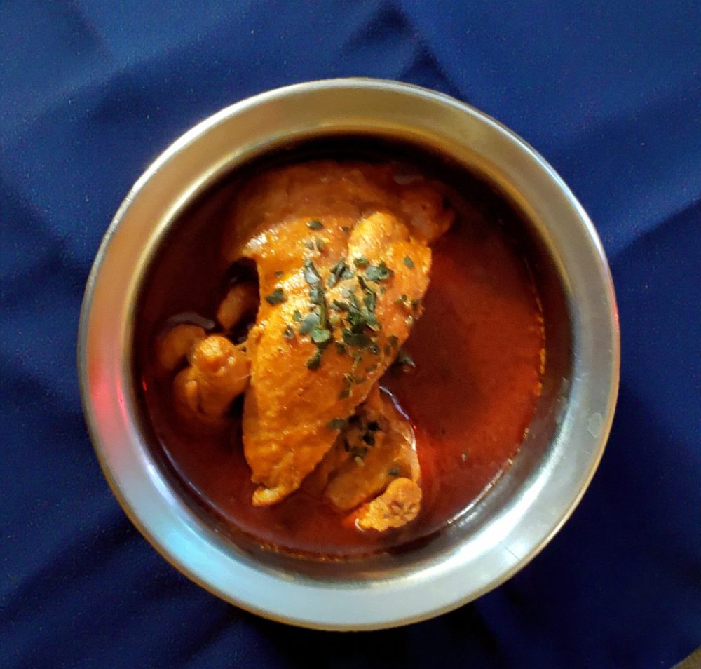 画像のチキンカレーも、チキン(皮なし)、タマネギ、ニンニクショウガ、トマトにスパイスも、ターメリック、コリアンダー、クミン、チリ、パプリカ、ガラムマサラ、あとはスターターのカルダモン、シナモン、クローブ等々。