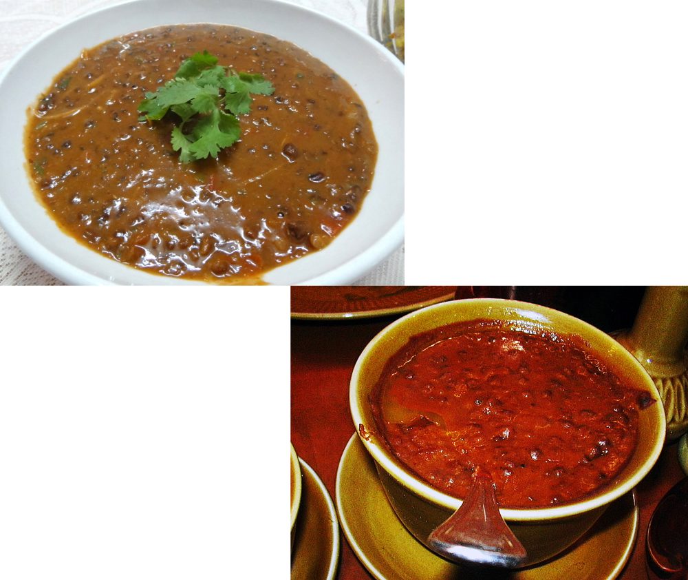 そして、1種ではなく、通常ウルッドダル(黒い皮の豆)とラジマ(キドニービーンズ)の2種を、剥いて割った、いわゆる”ダル”でなく、皮付きの姿のままのカレーとして登場します。