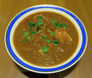 濃厚なトマトとスパイスのカレーソースに、具材を入れますが、インドではラム、チキン、野菜、パキスタンでは、牛、ラムが多く、安食堂から高級ホテルまで提供されているメニューです。