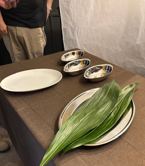 今銀座店のカレーの器は陶器製であることが多いですが、50年前の記憶を遡り、当時と同じ銀色の楕円形の食器を用意。照明も暗めにし当時の銀座店の雰囲気を再現しました。